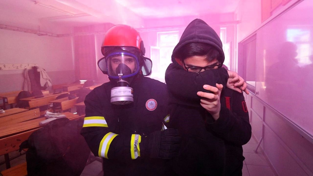 Senaryo kapsamında deprem sırasında hafif yaralanan bir öğrenci, okul bünyesinde faaliyet gösteren Doğal Afet Kulübü’nün kurtarma ve ilk yardım ekipleri tarafından yapılan müdahale ile güvenli alana taşındı. Tatbikatın devamında ise okulun giriş katında elektrik kaynaklı bir yangın senaryosu canlandırıldı.