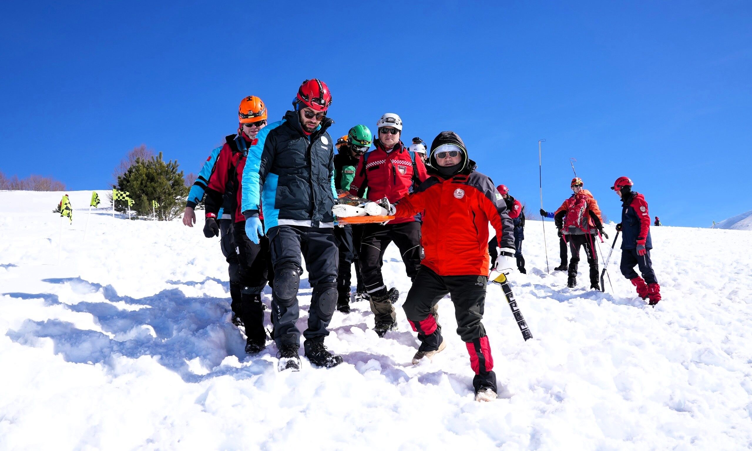 Senaryoya göre iki kişinin hayatını kaybettiği belirlenirken, bir kazazede sağ olarak kurtarıldı. Sağ kazazedenin yeri AFAD’ın canlı arama köpeği tarafından tespit edildi. Kar kütlesi altından çıkarılan kazazedelere olay yerinde ilk müdahale yapılarak güvenli bölgeye tahliyeleri sağlandı.