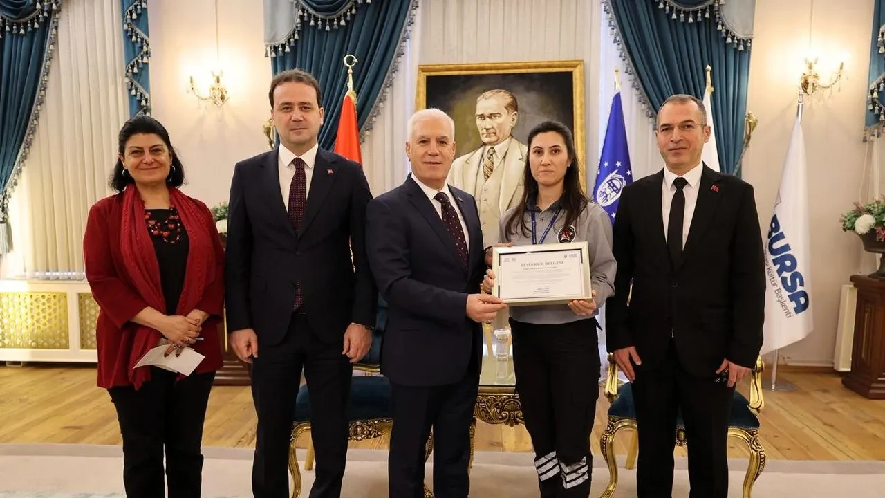 Görev anlayışı ve yaklaşımıyla dikkat çeken Fatma Yılmaz, Bursa Büyükşehir Belediye Başkanı Mustafa Bozbey tarafından Tarihi Belediye Binası’nda ağırlanarak teşekkür belgesiyle ödüllendirildi.